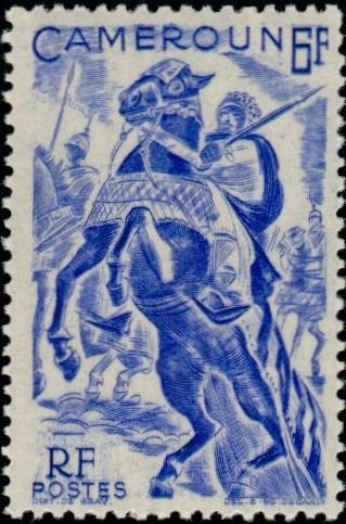 Visibility: public Image owner: none postage 6fr issue=1946b d=Fulani? cavalry unwmk Crops No visible images cropped from this one. Measurements Resolution is unknown. Source Source name: Colnect File URL: http://i.colnect.net/b/703/924/Lamido-horseman.jpg Uploaded August 18, 2014, 8:48 pm by Stan Shebs |
