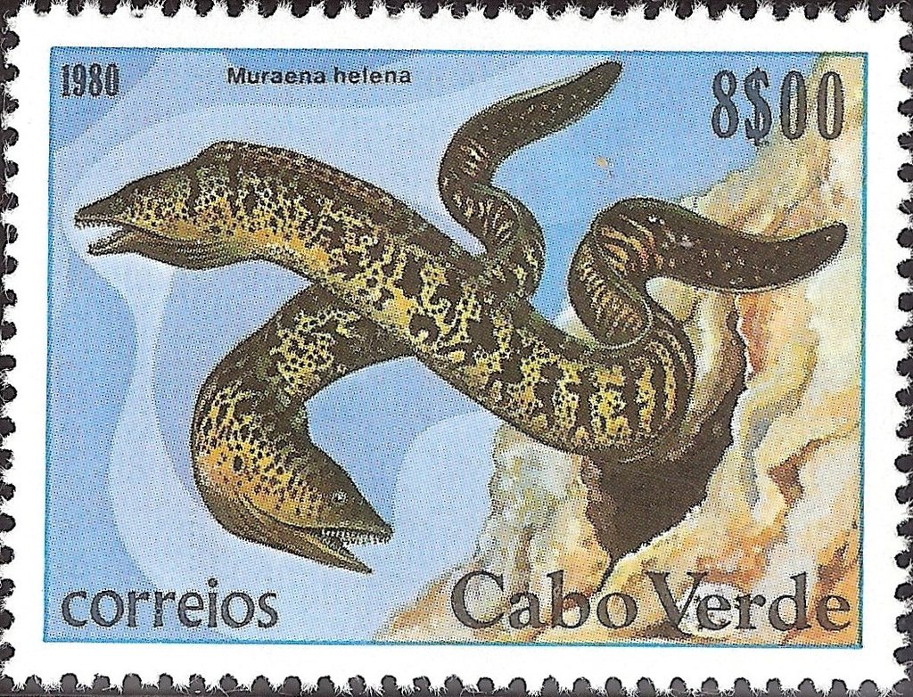Visibility: public Image owner: none postage 11/11/1980 8e multi dt=fishes (1980 Cape Verde) d=Muraena helena (1980) unwmk perf=12.75 Crops No visible images cropped from this one. Measurements Resolution is unknown. Source Source name: Colnect File URL: http://i.colnect.net/b/1124/845/Mediterranean-Moray-Muraena-helana.jpg Uploaded August 18, 2014, 9:35 pm by Stan Shebs |