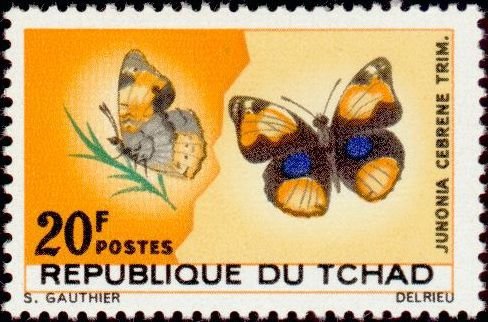 Visibility: public Image owner: none postage 5/23/1967 20fr dt=butterflies (1967 Chad) d=Junonia cebrene unwmk Crops No visible images cropped from this one. Measurements Resolution is unknown. Source Source name: Colnect File URL: http://i.colnect.net/b/771/748/Yellow-Pansy-Junonia-cebrene.jpg Uploaded August 18, 2014, 9:48 pm by Stan Shebs |
