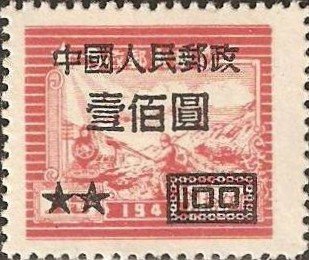Visibility: public Image owner: none postage 12/1950 $100 red issue=1950 provisional 4th d=train & postal runner 1949 oc=blk on=issuer=East China Liberation Area-$15-red-train & postal runner 1949 Crops No visible images cropped from this one. Measurements Resolution is unknown. Source Source name: Colnect File URL: http://i.colnect.net/b/750/553/Overprints.jpg Uploaded August 18, 2014, 10:03 pm by Stan Shebs |