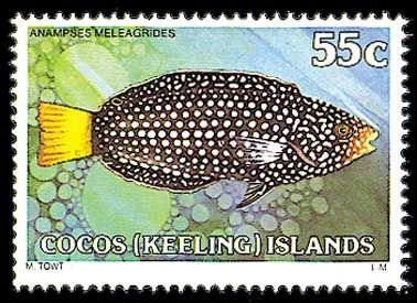 Visibility: public Image owner: none postage 55c multi issue=1979 dt=fishes (1979 Cocos (Keeling) Islands) d=Anampses meleagrides Crops No visible images cropped from this one. Measurements Resolution is unknown. Source Source name: Colnect File URL: http://i.colnect.net/images/b/1103/436/Spotted-Wrasse-Anampses-meleagrides.jpg Uploaded August 18, 2014, 10:25 pm by Stan Shebs |