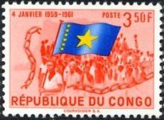 Visibility: public Image owner: none postage 1/4/1961 3.50fr issue=independence agreement 3rd d=flag&people unwmk Crops No visible images cropped from this one. Measurements Resolution is unknown. Source Source name: Colnect File URL: http://i.colnect.net/images/b/1088/264/Congolese-with-national-flag.jpg Uploaded August 18, 2014, 10:53 pm by Stan Shebs |