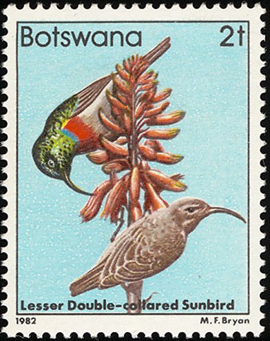 Visibility: public Image owner: none postage 7/1/1982 2t multi dt=birds (1982 Botswana) d=lesser double-collared sunbirds unwmk perf=14x14.5 Crops No visible images cropped from this one. Measurements Resolution is unknown. Source Source name: Colnect File URL: http://i.colnect.net/b/597/736/Eastern-Double-collared-Sunbird-Nectarinia-mediocris.jpg Uploaded August 18, 2014, 11:27 pm by Stan Shebs |