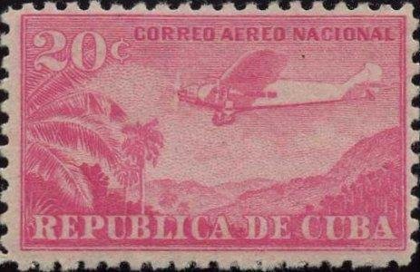 Visibility: public Image owner: none airmail 20c carrose issue=1931 airmail domestic d=airplane over Cuban interior wmk=star (Cuba) perf=10 Crops No visible images cropped from this one. Measurements Resolution is unknown. Source Source name: Colnect File URL: http://i.colnect.net/b/209/062/Airplane-over-mountain-landscape.jpg Uploaded August 18, 2014, 11:39 pm by Stan Shebs |