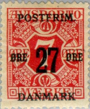 Visibility: public Image owner: none postage 27o car d=numeral on solid panel ovpt=POSTFRIM.//ORE 27 ORE//DANMARK oc=blk on=issue=1907 newspaper-7o wmk=crown b perf=12.75 Crops No visible images cropped from this one. Measurements Resolution is unknown. Source Source name: Colnect File URL: http://i.colnect.net/images/b/155/851/Surcharge.jpg Uploaded August 19, 2014, 1:33 pm by Stan Shebs |