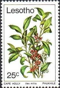 Visibility: public Image owner: none postage 3/26/1979 25c multi dt=trees (1979 Lesotho) d=Cape holly wmk=basuto hat perf=14.25 Crops No visible images cropped from this one. Measurements Resolution is unknown. Source Source name: Colnect File URL: http://i.colnect.net/images/b/1730/146/Cape-holly.jpg Uploaded September 17, 2014, 6:03 pm by Stan Shebs |