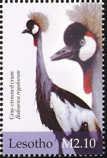 Visibility: public Image owner: none postage 5/17/2004 2.10m multi issue=Birds of Africa dt=birds (2004 Lesotho) d=Balearica regulorum (2004 Lesotho) wmk=basuto hat perf=14.25 Crops No visible images cropped from this one. Measurements Resolution is unknown. Source Source name: Colnect File URL: http://i.colnect.net/b/1725/609/Grey-Crowned-Crane-Balearica-regulorum.jpg Uploaded September 17, 2014, 6:06 pm by Stan Shebs |