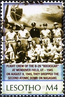 Visibility: public Image owner: none postage 8/22/2005 4m multi issue=WWII end 60th d=flight crew & B-29 "Bockscar" unwmk Crops No visible images cropped from this one. Measurements Resolution is unknown. Source Source name: Colnect File URL: http://i.colnect.net/b/1618/276/History-World-War-I---II.jpg Uploaded September 17, 2014, 6:11 pm by Stan Shebs |
