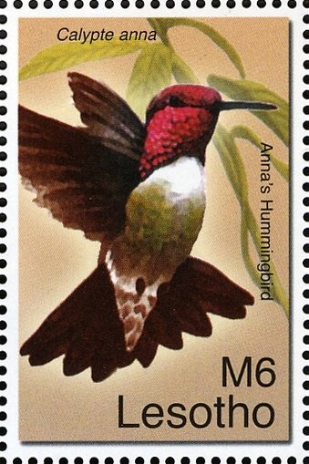 Visibility: public Image owner: none postage 8/20/2007 6.00m multi dt=fauna & flora (2007 Lesotho) d=Calypte anna Anna's Hummingbird unwmk perf=14 Crops No visible images cropped from this one. Measurements Resolution is unknown. Source Source name: Colnect File URL: http://i.colnect.net/b/1618/703/Anna-s-Hummingbird-Calypte-anna.jpg Uploaded September 17, 2014, 6:12 pm by Stan Shebs |