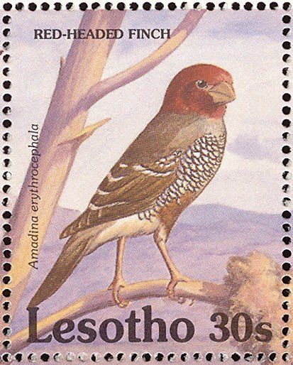 Visibility: public Image owner: none postage 2/10/1992 30s multi dt=native birds (1992) d=red-headed finch Amadina erythrocephala wmk=basuto hat perf=14.25 Crops No visible images cropped from this one. Measurements Resolution is unknown. Source Source name: Colnect File URL: http://i.colnect.net/b/1725/569/Red-headed-Finch-Amadina-erythrocephala.jpg Uploaded September 17, 2014, 6:17 pm by Stan Shebs |