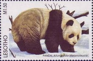 Visibility: public Image owner: none postage 4/14/1998 1.50m multi issue=Animals of the World 1998 d=Ailuropoda melanoleuca (1998 Lesotho) wmk=basuto hat perf=13.75x14 Crops No visible images cropped from this one. Measurements Resolution is unknown. Source Source name: Colnect File URL: http://i.colnect.net/b/1736/219/Giant-Panda-Ailuropoda-melanoleuca.jpg Uploaded September 17, 2014, 6:19 pm by Stan Shebs |