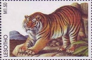 Visibility: public Image owner: none postage 4/14/1998 1.50m multi issue=Animals of the World 1998 d=Panthera tigris (1998 Lesotho) wmk=basuto hat perf=13.75x14 Crops No visible images cropped from this one. Measurements Resolution is unknown. Source Source name: Colnect File URL: http://i.colnect.net/b/1736/220/Tiger-Panthera-tigris.jpg Uploaded September 17, 2014, 6:19 pm by Stan Shebs |