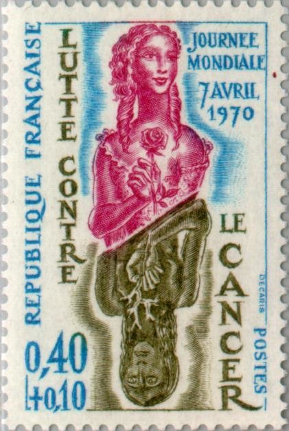 Visibility: public Image owner: none semipostal 4/6/1970 0.40+0.10fr multi issue=world day against cancer unwmk perf=13 Crops No visible images cropped from this one. Measurements Resolution is unknown. Source Source name: Colnect File URL: http://i.colnect.net/b/144/704/Fight-against-cancer-World-Day-April-7-1970.jpg Uploaded August 19, 2014, 3:52 pm by Stan Shebs |