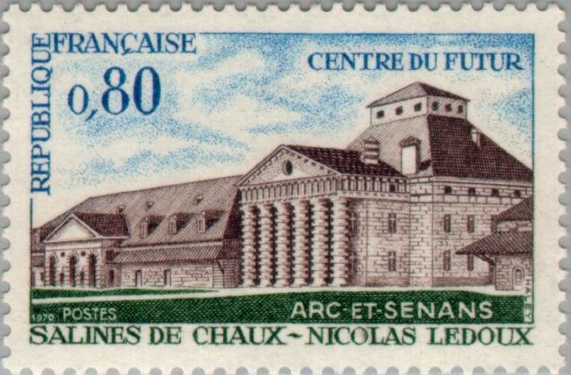 Visibility: public Image owner: none postage 9/26/1970 80c multi issue=Royal Salt Works restoration d=Royal Salt Works unwmk perf=13 Crops No visible images cropped from this one. Measurements Resolution is unknown. Source Source name: Colnect (old) File URL: http://i.colnect.net/b/144/723/Arc-and-Senans---Centre-of-the-future-Salines-de-Chaux---Ni.jpg Uploaded September 29, 2012, 10:36 pm by Stan Shebs |