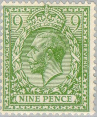 Visibility: public Image owner: none postage 6/1924 9p olgrn issue=1924 d=King George V (1912 e) wmk=crown & block GvR perf=15x14 Crops No visible images cropped from this one. Measurements Resolution is unknown. Source Source name: Colnect File URL: http://i.colnect.net/b/121/359/King-George-V.jpg Uploaded August 19, 2014, 4:07 pm by Stan Shebs |