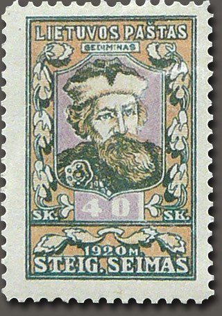 Visibility: public Image owner: none postage 40sk buff&grngray&vio issue=assembly opening, trial printings d=Grand Duke Gediminas (1920) wmk=wavy lines (Lithuania) perf=11.25 Crops No visible images cropped from this one. Measurements Resolution is unknown. Source Source name: Colnect File URL: http://i.colnect.net/b/447/640/Grand-Duke-Gediminas.jpg Uploaded August 20, 2014, 8:36 pm by Stan Shebs |