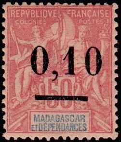 Type: stamp Issuer: Madagascar Date: 1902 Denom: ?