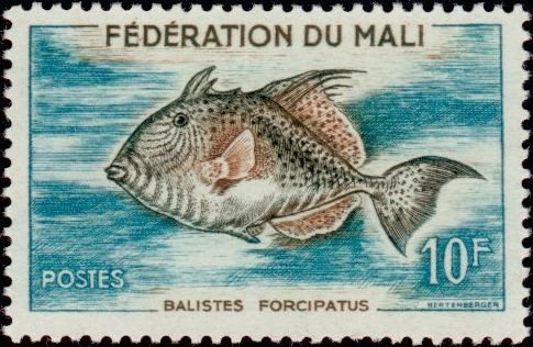 Visibility: public Image owner: none postage 3/5/1960 10fr dt=fishes (1960 Mali Federation) d=Balistes forcipatus (1960) unwmk Crops No visible images cropped from this one. Measurements Resolution is unknown. Source Source name: Colnect File URL: http://i.colnect.net/b/1049/704/Grey-Triggerfish-Balistes-forcipatus.jpg Uploaded August 20, 2014, 11:20 pm by Stan Shebs |