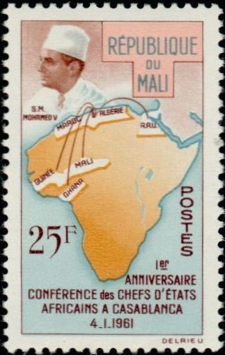Visibility: public Image owner: none postage 1/4/1962 25fr multi issue=Casablanca conference d=Mohamed V & map of Africa unwmk perf=12.5 Crops No visible images cropped from this one. Measurements Resolution is unknown. Source Source name: Colnect File URL: http://i.colnect.net/b/1126/550/Map-of-Africa-and-Mohamed-V-effigy.jpg Uploaded August 20, 2014, 11:20 pm by Stan Shebs |
