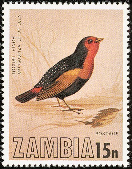 Visibility: public Image owner: none postage 7/1/1977 15n multi dt=birds (1977 Zambia) d=locust finch Ortygospiza locustella unwmk Crops No visible images cropped from this one. Measurements Resolution is unknown. Source Source name: Colnect File URL: http://i.colnect.net/b/864/816/Locust-Finch-Paludipasser-locustella.jpg Uploaded January 25, 2014, 4:32 pm by Stan Shebs |