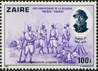 Visibility: public Image owner: none postage 12/13/1980 100k multi issue=Belgian independence 150th d=native soldiers & King Albert I unwmk Crops No visible images cropped from this one. Measurements Resolution is unknown. Source Source name: Colnect File URL: http://i.colnect.net/b/1113/515/Albert-I.jpg Uploaded August 20, 2014, 11:52 pm by Stan Shebs |