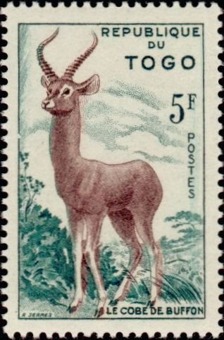 Visibility: public Image owner: none postage 1/15/1959 5fr dt=Republique du Togo d=Adenota kob (1957) unwmk perf=13 Crops No visible images cropped from this one. Measurements Resolution is unknown. Source Source name: Colnect File URL: http://i.colnect.net/b/571/506/Kob-Kobus-kob.jpg Uploaded August 21, 2014, 3:22 pm by Stan Shebs |