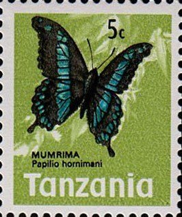 Visibility: public Image owner: none postage 12/3/1973 5c multi issue=1973 dt=butterflies (1973 Tanzania) d=Papilio hornimani unwmk Crops No visible images cropped from this one. Measurements Resolution is unknown. Source Source name: Colnect File URL: http://i.colnect.net/b/1070/014/Horniman-s-Swallowtail-Papilio-hornimani.jpg Uploaded August 21, 2014, 3:24 pm by Stan Shebs |