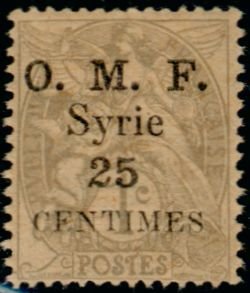Visibility: public Image owner: none postage 25c gray issue=1920c d=Liberte Egalite Fraternite ovpt=O.M.F.//Syrie//value centimes oc=blk on=issuer=France-1900-1c unwmk perf=14x13.5 Crops No visible images cropped from this one. Measurements Resolution is unknown. Source Source name: Colnect File URL: http://i.colnect.net/images/b/881/703/-quot-OMF-Syrie-quot---amp--value-on-french-stamps-1900-06.jpg Uploaded August 21, 2014, 3:37 pm by Stan Shebs |