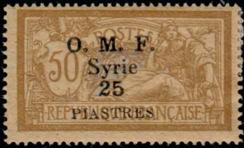 Visibility: public Image owner: none postage 25p yelbrn&lav issue=1920c d=Liberty & Peace ovpt=O.M.F.//Syrie//value centimes oc=blk on=issuer=France-1900-50c unwmk perf=14x13.5 Crops No visible images cropped from this one. Measurements Resolution is unknown. Source Source name: Colnect File URL: http://i.colnect.net/images/b/881/714/-quot-OMF-Syrie-quot---amp--value-on-french-stamps-1900-06.jpg Uploaded August 21, 2014, 3:37 pm by Stan Shebs |