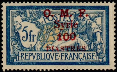 Visibility: public Image owner: none postage 100p dkbl&buff issue=1920c d=Liberty & Peace ovpt=O.M.F.//Syrie//value centimes oc=red on=issuer=France-1900-5fr-dkbl&buff unwmk perf=14x13.5 Crops No visible images cropped from this one. Measurements Resolution is unknown. Source Source name: Colnect File URL: http://i.colnect.net/images/b/881/717/-quot-OMF-Syrie-quot---amp--value-on-french-stamps-1900-06.jpg Uploaded August 21, 2014, 3:37 pm by Stan Shebs |