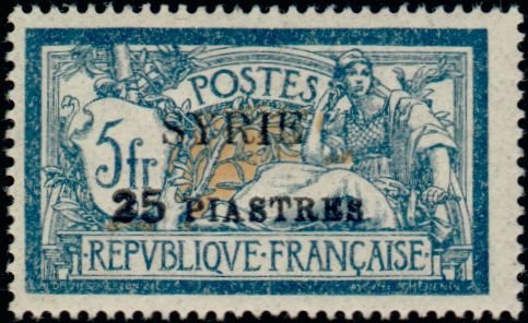 Visibility: public Image owner: none postage 1/13/1924 25p dkbl&buff issue=1924a d=Liberty & Peace ovpt=SYRIE//25 PIASTRES oc=blk on=issuer=France-1900-5fr unwmk perf=14x13.5 Crops No visible images cropped from this one. Measurements Resolution is unknown. Source Source name: Colnect File URL: http://i.colnect.net/images/b/881/789/-quot-SYRIE-quot---amp--value-on-french-stamp.jpg Uploaded August 21, 2014, 3:39 pm by Stan Shebs |