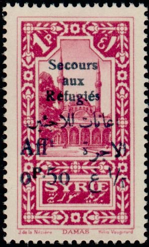 Visibility: public Image owner: none semipostal 1p+50c mag issue=Relief for refugees from Jebel Druze war dt=landmarks (1925) d=Tekkiye Mosque ovpt=Secours aux Refugies//(arabic)//... oc=blk on=3/1925-1p unwmk Crops No visible images cropped from this one. Measurements Resolution is unknown. Source Source name: Colnect File URL: http://i.colnect.net/images/b/883/783/-quot-Secours-aux-Refugi-eacute-s-quot---amp--value-on-Definitive-1925.jpg Uploaded August 21, 2014, 3:52 pm by Stan Shebs |