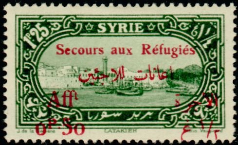Visibility: public Image owner: none semipostal 1.25p+50c dkgrn issue=Relief for refugees from Jebel Druze war dt=landmarks (1925) d=Latakia ovpt=Secours aux Refugies//(arabic)//... oc=red on=3/1925-1.25p unwmk Crops No visible images cropped from this one. Measurements Resolution is unknown. Source Source name: Colnect File URL: http://i.colnect.net/images/b/883/784/-quot-Secours-aux-Refugi-eacute-s-quot---amp--value-on-Definitive-1925.jpg Uploaded August 21, 2014, 3:52 pm by Stan Shebs |