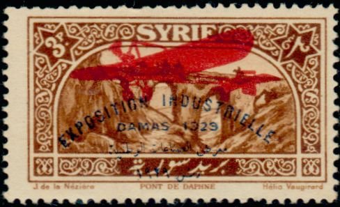 Visibility: public Image owner: none airmail 9/5/1929 3p multi issue=Damascus Industrial Exhibition unwmk Crops No visible images cropped from this one. Measurements Resolution is unknown. Source Source name: Colnect File URL: http://i.colnect.net/b/884/850/Exhibition-s-bilingual-overprint-on-previous-Airmail-stamp.jpg Uploaded August 21, 2014, 3:53 pm by Stan Shebs |
