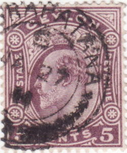 Type: stamp Issuer: Ceylon Date: 1908 Denom: ?