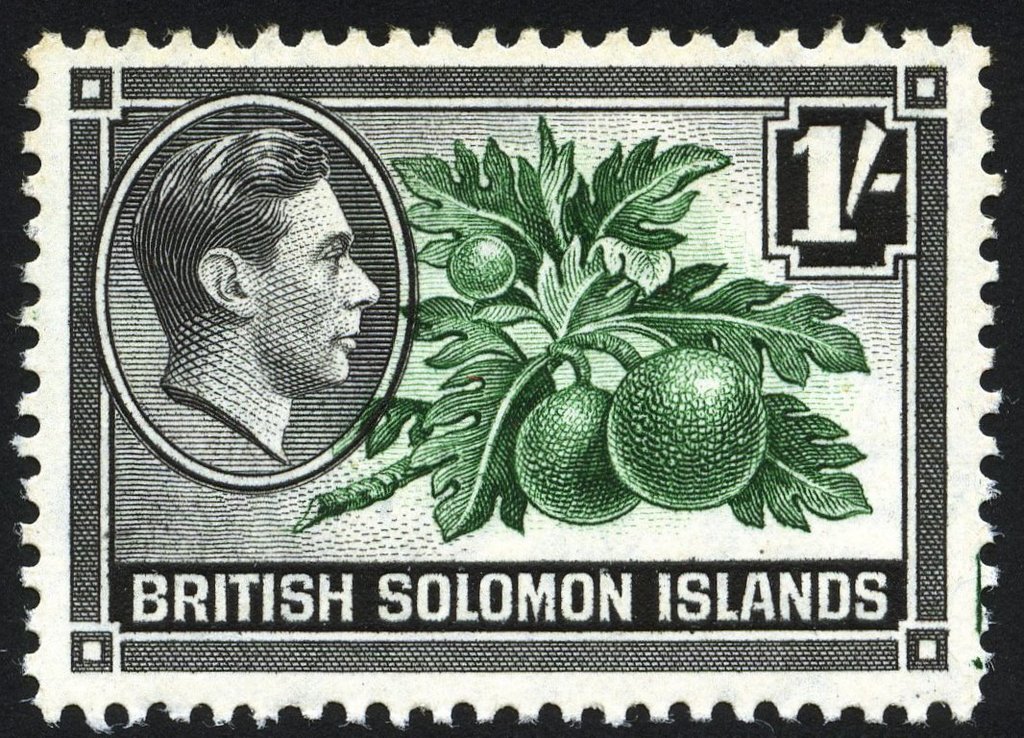 Visibility: public Image owner: none postage 2/1/1939 1sh blk&grn issue=George VI pictorials d=breadfruit & King George VI wmk=mult crown & script CA perf=12.5 Crops No visible images cropped from this one. Measurements Resolution is unknown. Source Source name: Colnect File URL: http://i.colnect.net/images/b/1218/251/Breadfruit.jpg Uploaded August 21, 2014, 4:17 pm by Stan Shebs |
