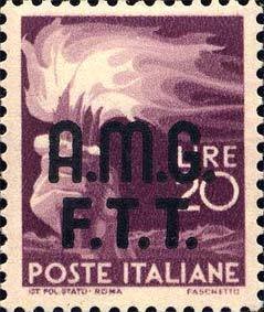 Visibility: public Image owner: none postage 10/1/1947 20l dkredvio issue=1947 d=torch ovpt=A.M.G.//F.T.T. oc=blk on=issuer=Italy-issue=Peace-20l wmk=winged wheel perf=14 Crops No visible images cropped from this one. Measurements Resolution is unknown. Source Source name: Colnect File URL: http://i.colnect.net/b/1381/117/Democratic-surprint-in-two-lines.jpg Uploaded September 17, 2014, 6:59 pm by Stan Shebs |