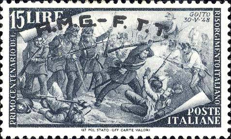 Visibility: public Image owner: none postage 7/1/1948 15l gray issue=1948 b ovpt=A.M.G.-F.T.T. oc=blk on=issuer=Italy-issue=Risorgimento 100th-15l wmk=winged wheel perf=14 Crops No visible images cropped from this one. Measurements Resolution is unknown. Source Source name: Colnect File URL: http://i.colnect.net/b/1391/378/Centenary-of-the-revival.jpg Uploaded September 17, 2014, 7:00 pm by Stan Shebs |