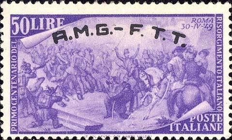Visibility: public Image owner: none postage 7/1/1948 50l vio issue=1948 b ovpt=A.M.G.-F.T.T. oc=blk on=issuer=Italy-issue=Risorgimento 100th-50l wmk=winged wheel perf=14 Crops No visible images cropped from this one. Measurements Resolution is unknown. Source Source name: Colnect File URL: http://i.colnect.net/b/1391/381/Centenary-of-the-revival.jpg Uploaded September 17, 2014, 7:00 pm by Stan Shebs |