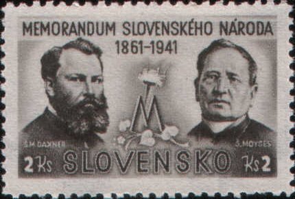 Visibility: public Image owner: none postage 5/26/1941 2k issue=80th Anniversary of the Memorandum of the Slovak Nation d=Štefan Marko Daxner & Štefan Moyses wmk=double cross mult Crops No visible images cropped from this one. Measurements Resolution is unknown. Source Source name: Colnect File URL: http://i.colnect.net/b/809/480/Memorandum-of-the-Slovak-nation.jpg Uploaded August 21, 2014, 4:25 pm by Stan Shebs |