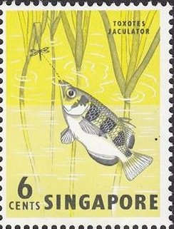 Visibility: public Image owner: none postage 3/31/1962 6c issue=1962 dt=Malayan fishes d=Toxotes jaculator (1962) wmk=St Edwards crown & CA Crops No visible images cropped from this one. Measurements Resolution is unknown. Source Source name: Colnect File URL: http://i.colnect.net/b/1070/781/Banded-Archerfish-Toxotes-jaculatrix.jpg Uploaded August 21, 2014, 4:42 pm by Stan Shebs |