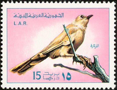 Visibility: public Image owner: none postage 5/1/1976 15dh multi dt=birds (1976 Libya) d=Turdoides fulva unwmk Crops No visible images cropped from this one. Measurements Resolution is unknown. Source Source name: Colnect File URL: http://i.colnect.net/b/1648/452/Fulvous-Babbler-Turdoides-fulva.jpg Uploaded September 17, 2014, 8:22 pm by Stan Shebs |