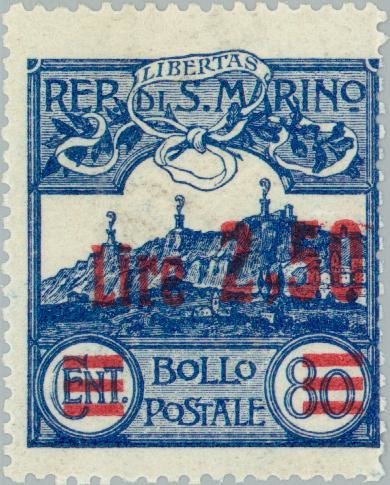Visibility: public Image owner: none postage 7/1/1926 2.50l bl issue=1926 provisional d=Mt. Titano oc=blk on=1921-80c wmk=crown (Italy) Crops No visible images cropped from this one. Measurements Resolution is unknown. Source Source name: Colnect File URL: http://i.colnect.net/images/b/166/817/Definitive-new-value-overprint.jpg Uploaded August 21, 2014, 5:05 pm by Stan Shebs |