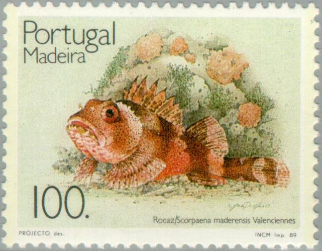 Visibility: public Image owner: none postage 9/20/1989 100e multi issue=Fish 1989 unwmk Crops No visible images cropped from this one. Measurements Resolution is unknown. Source Source name: Colnect File URL: http://i.colnect.net/b/186/507/Madeira-Rockfish-Scorpaena-maderensis.jpg Uploaded September 17, 2014, 9:57 pm by Stan Shebs |