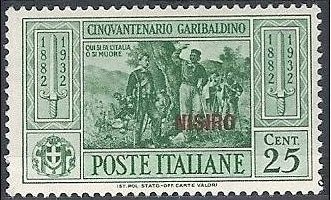 Visibility: public Image owner: none postage 8/28/1932 25c grn issue=Garibaldi 50th ovpt=NISIRO oc=blk on=issuer=Italy-25c-grn-unissued Crops No visible images cropped from this one. Measurements Resolution is unknown. Source Source name: Colnect File URL: http://i.colnect.net/b/1703/249/50th-Death-Anniversary-of-Giovanni-Garibaldi.jpg Uploaded September 17, 2014, 10:10 pm by Stan Shebs |