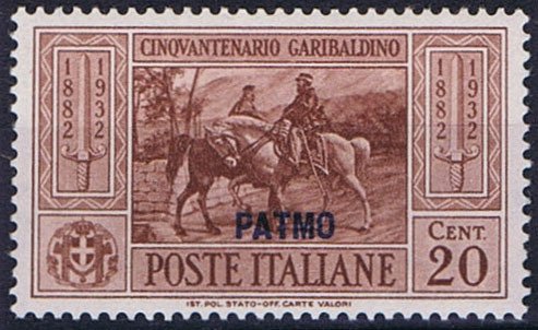 Visibility: public Image owner: none postage 8/28/1932 20c redbrn issue=Garibaldi 50th ovpt=PATMO oc=bl on=issuer=Italy-20c-redbrn-unissued Crops No visible images cropped from this one. Measurements Resolution is unknown. Source Source name: Colnect File URL: http://i.colnect.net/b/1703/268/50th-Death-Anniversary-of-Giovanni-Garibaldi.jpg Uploaded September 17, 2014, 10:10 pm by Stan Shebs |