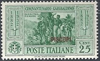 Visibility: public Image owner: none postage 8/28/1932 25c grn issue=Garibaldi 50th ovpt=PISCOPI oc=blk on=issuer=Italy-25c-grn-unissued Crops No visible images cropped from this one. Measurements Resolution is unknown. Source Source name: Colnect File URL: http://i.colnect.net/b/1703/288/50th-Death-Anniversary-of-Giovanni-Garibaldi.jpg Uploaded September 17, 2014, 10:10 pm by Stan Shebs |