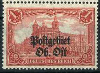 Visibility: public Image owner: none postage 1m carrose issue=1916 d=Imperial Post Office (Deutsches Reich) ovpt=Postgebiet//Ob. Ost oc=blk on=issuer=Germany-1905-1m wmk=lozenges perf=14x14.5 Crops No visible images cropped from this one. Measurements Resolution is unknown. Source Source name: Colnect File URL: http://i.colnect.net/images/b/1319/471/Overprint-on--quot-Germania-quot-.jpg Uploaded September 17, 2014, 10:23 pm by Stan Shebs |
