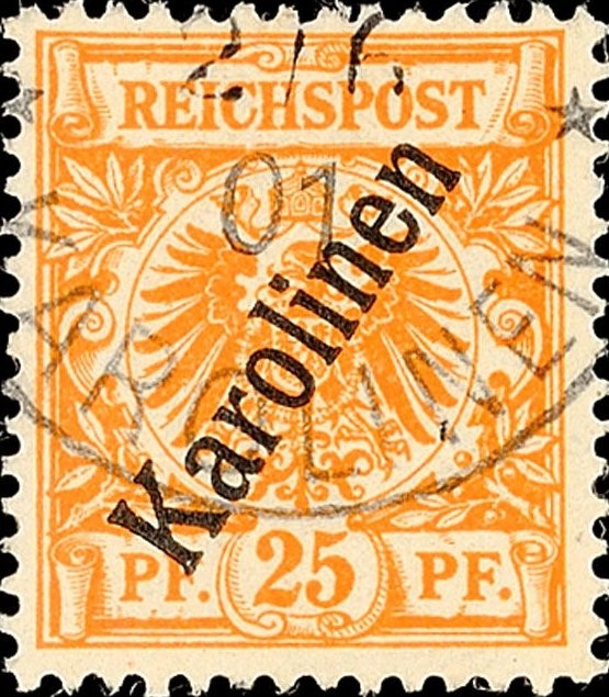 Visibility: public Image owner: none postage 25pf org issue=1900 d=German eagle (1889) ovpt=Karolinen(56deg) oc=blk on=issuer=Germany-1890-25pf unwmk perf=13.5x14.25 Crops No visible images cropped from this one. Measurements Resolution is unknown. Source Source name: Colnect File URL: http://i.colnect.net/b/1695/065/Crown-eagle-with-overprint.jpg Uploaded September 17, 2014, 10:24 pm by Stan Shebs |