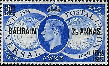 Visibility: public Image owner: none postage 10/10/1949 2 1/2a ultra issue=UPU 75th d=two hemispheres & King George VI ovpt=BAHRAIN oc=blk on=issuer=Great Britain-issue=UPU 75th-2 1/2d wmk=crown & GVIR perf=15x14 Crops No visible images cropped from this one. Measurements Resolution is unknown. Source Source name: Colnect File URL: http://i.colnect.net/b/1795/838/UPU-connects-the-hemispheres-with-overprint.jpg Uploaded November 23, 2013, 7:00 pm by Stan Shebs |